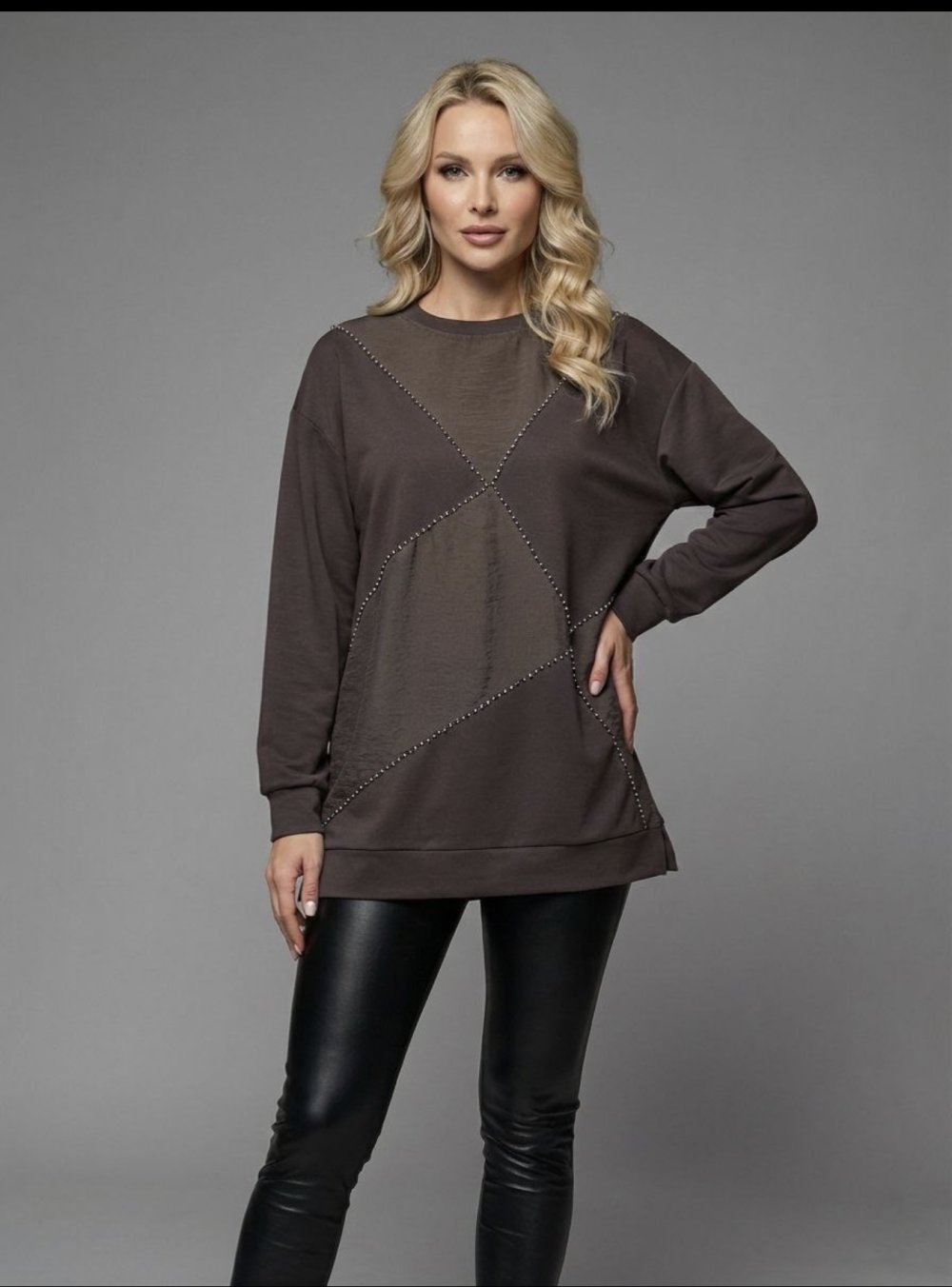 Omuz Fermuarlı Kuşlu  Tunik Beyaz