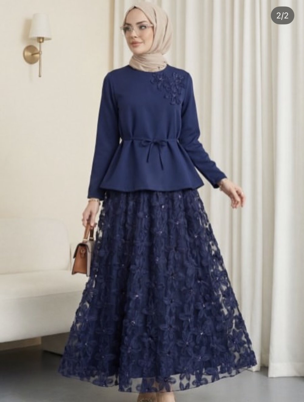 Asimetrik Pliseli Etekli Takım Mürdüm