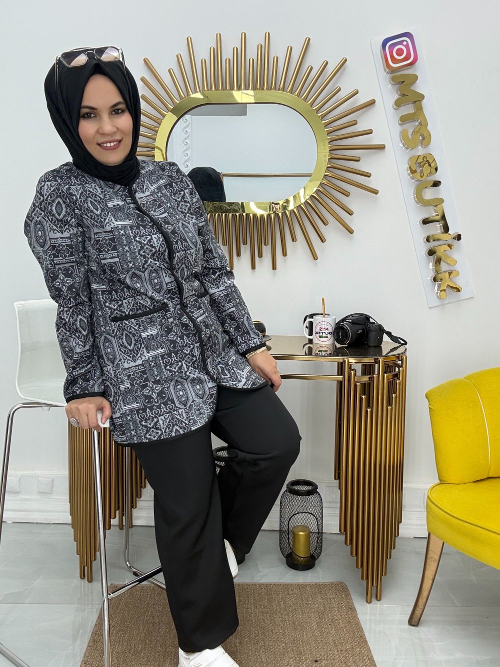 Etnik Desenli Ceket Takım Siyah