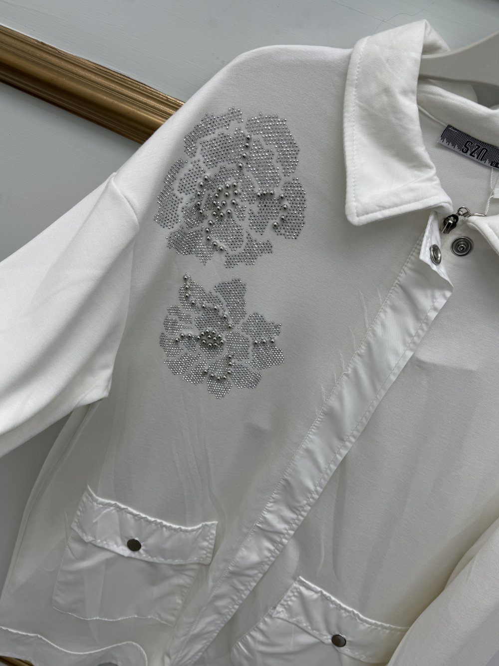 Göğüs Çiçek İnci Taşlı Kap Beyaz