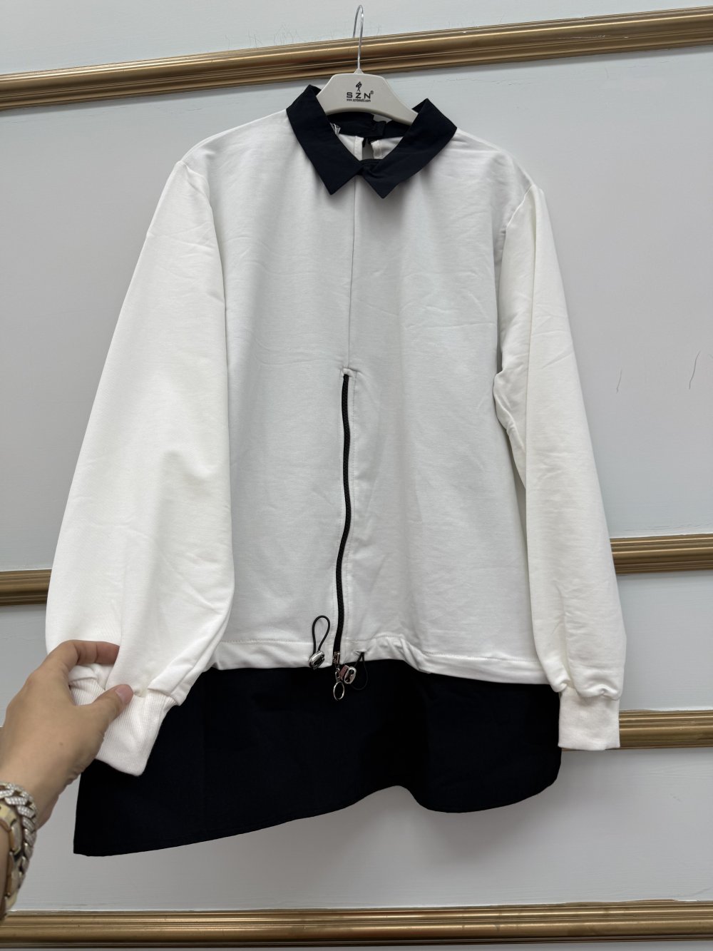 Gömlek Yaka Önü Fermuarlı Beyaz