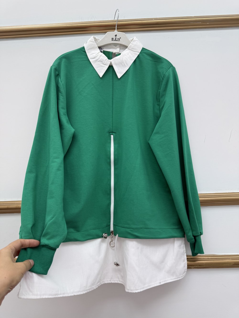 Gömlek Yaka Önü Fermuarlı Zümrüt