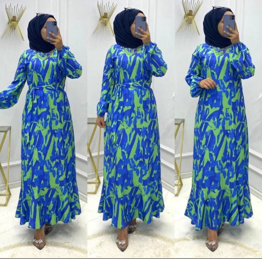Krep Elbise Mavi
