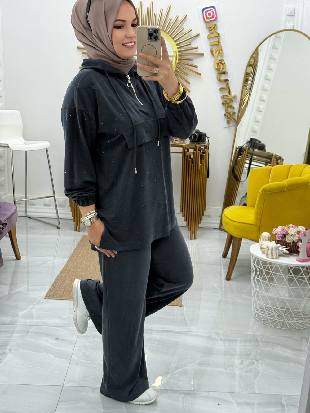 Minik Taşlı Takım Füme