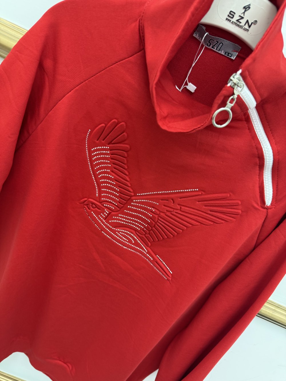 Omuz Fermuarlı Kuşlu Tunik Kırmızı