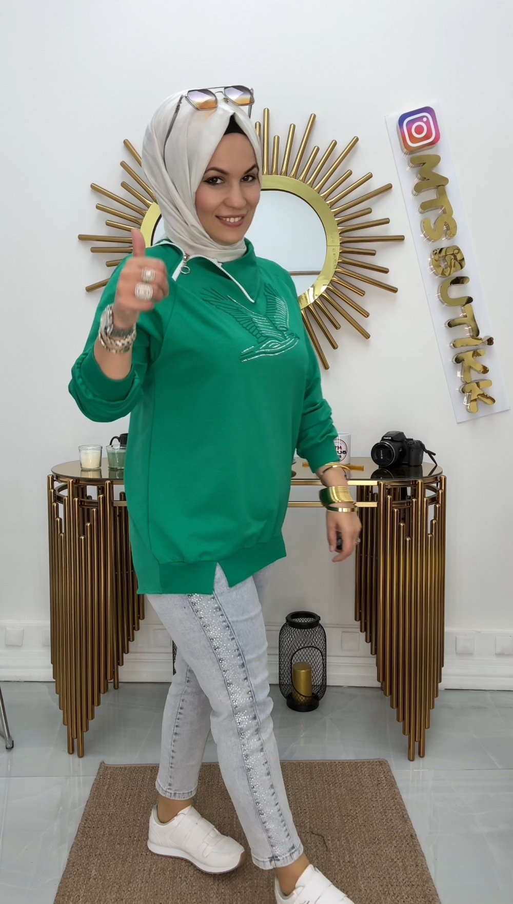 Omuz Fermuarlı Kuşlu Tunik Yeşil