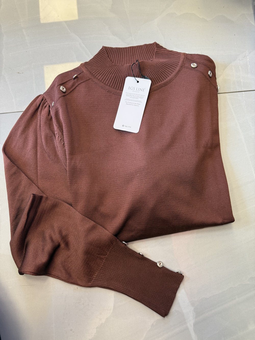 Omuzu Düğmeli Merserize Kazak Kahverengi