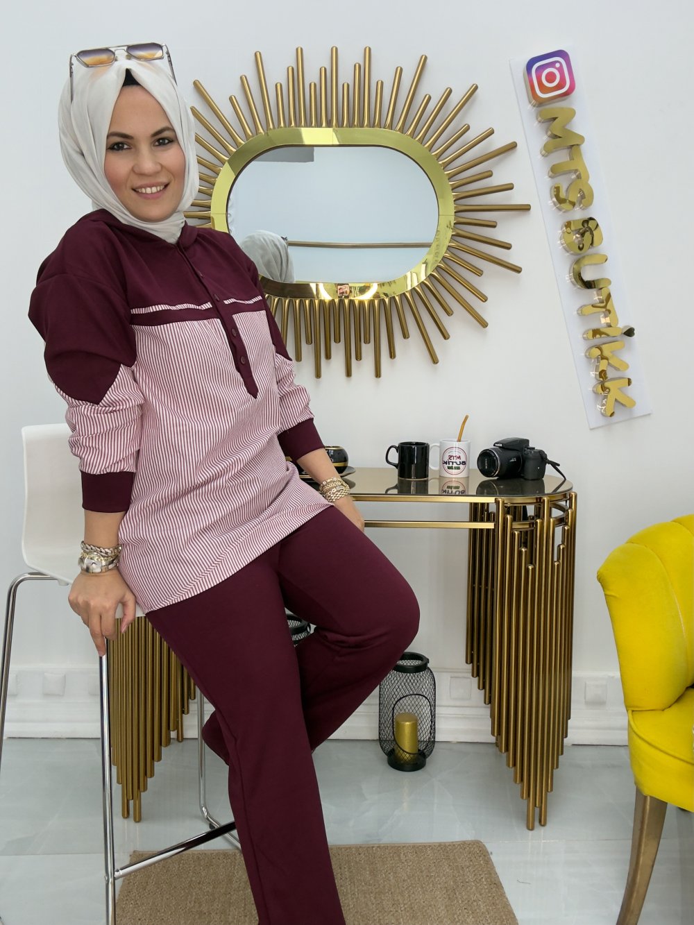 Afilli Pliseli Bol Paça Sandy Takım Bordo