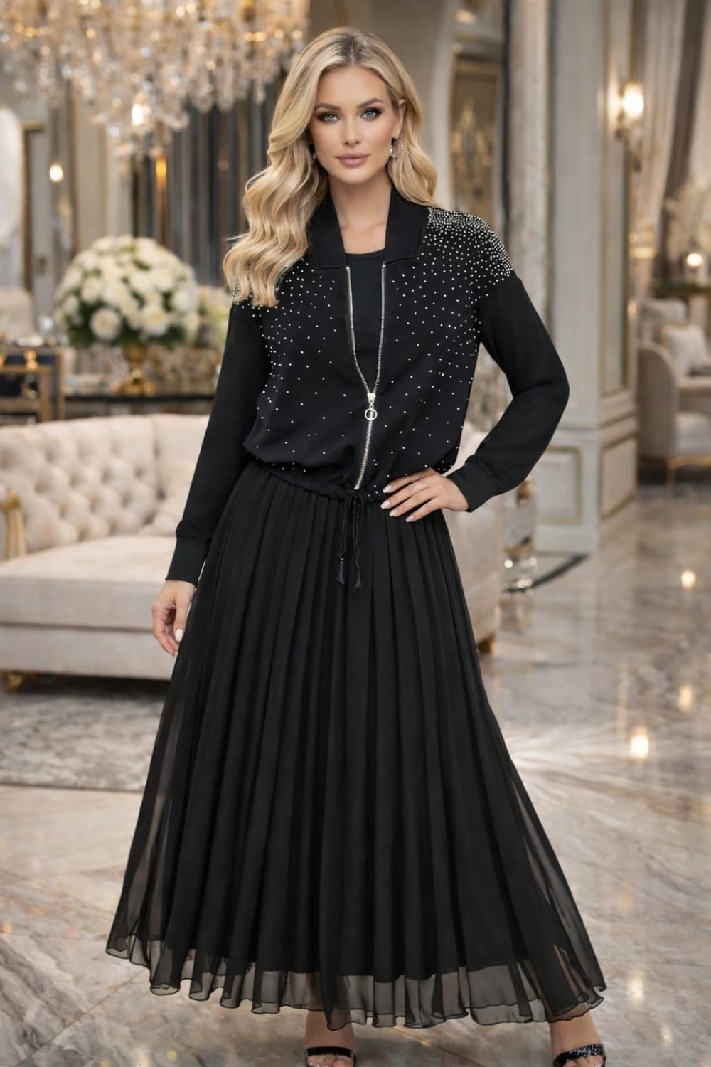 Pliseli Etekli Takım Siyah