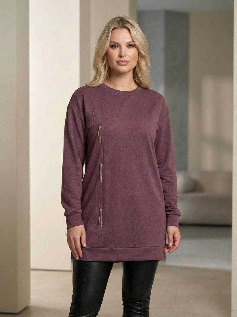 Çıtçıtlı Kaşkorse Tunik Bordo