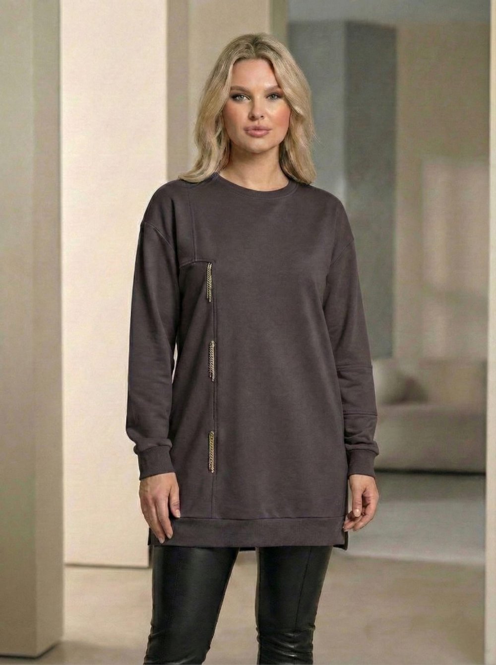Omuz Fermuarlı Kuşlu  Tunik Beyaz