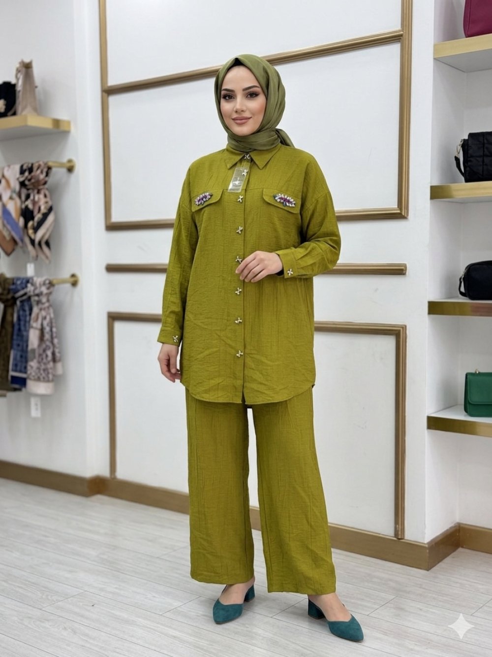 Taşlı Kapak Cep Takım Yağ Yeşili